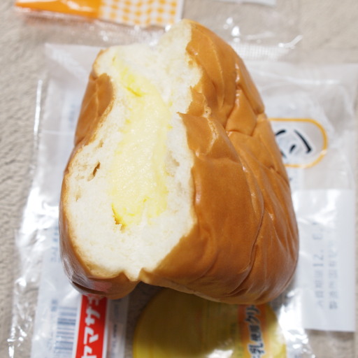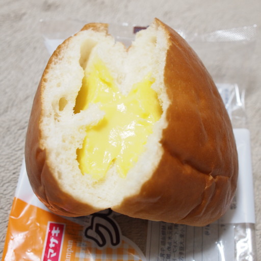 「無印」の断面。パンがふわふわしている。クリームは鮮やかな黄色。
